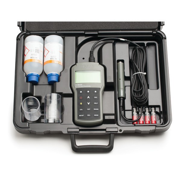 HI98192 se suministra con sonda de conductividad de acero inoxidable HI763133, solución de calibración HI7031M 1413 mS / cm (230 ml), solución de calibración HI7035M 111.8 mS / cm (230 ml), vaso de precipitados de plástico de 100 ml (2), software HI92000 para PC, cable micro USB HI920015, Baterías AA de 1.5V (4), manual de instrucciones, guía de inicio rápido, certificado de calidad y maleta de transporte resistente HI720192. |