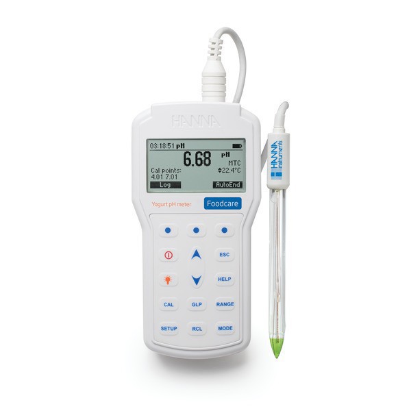 - Además tiene un electrodo de pH único hecho para yogur, el HI98164 tiene la función exclusiva de CAL Check ™ de Hanna que alerta al usuario de posibles problemas durante el proceso de calibración. Esto es muy importante para el procesador de alimentos ya que es probable que la sonda se recubra con los sólidos que se encuentran en el producto alimenticio que se está midiendo. Este puede ser un error en la medición del pH.