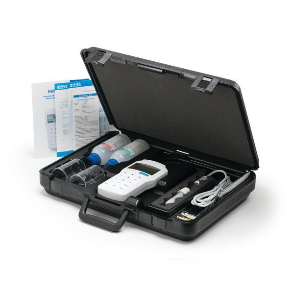 - El maletín de transporte HI720161 es el adecuado para contener todos los componentes necesarios para realizar una medición de campo, incluye el medidor y el electrodo, los vasos, las soluciones de calibración y las soluciones de limpieza.