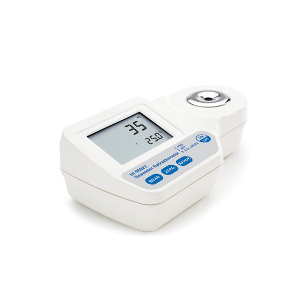 - El refractómetro digital HI96822 elimina la incertidumbre asociada con los refractómetros visuales al medir el índice de refracción para determinar la salinidad del agua de mar natural y artificial, incluido el agua salobre, el océano o el acuario de agua salada. El instrumento convierte el índice de refracción de una muestra a PSU, ppt y gravedad específica. Estas conversiones se basan en publicaciones científicas respetadas que utilizan las propiedades físicas del agua de mar (no del cloruro de sodio). El refractómetro digital HI96822 es una herramienta fácil de usar para medir la salinidad en agua de mar natural y artificial, ya sea en el campo, en el laboratorio o en el hogar.
