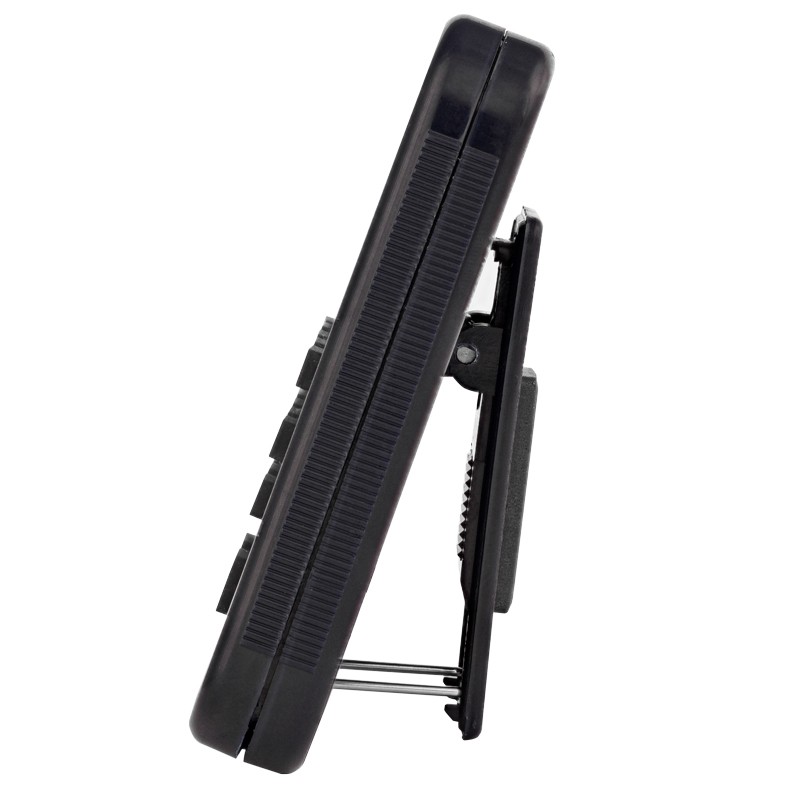 - También tiene un caballete abatible para pararse en la mesa de laboratorio, un sujetador de resorte para sujetarlo a un portapapeles, un orificio para usar con un cordón y el Certificado Traceable ®.