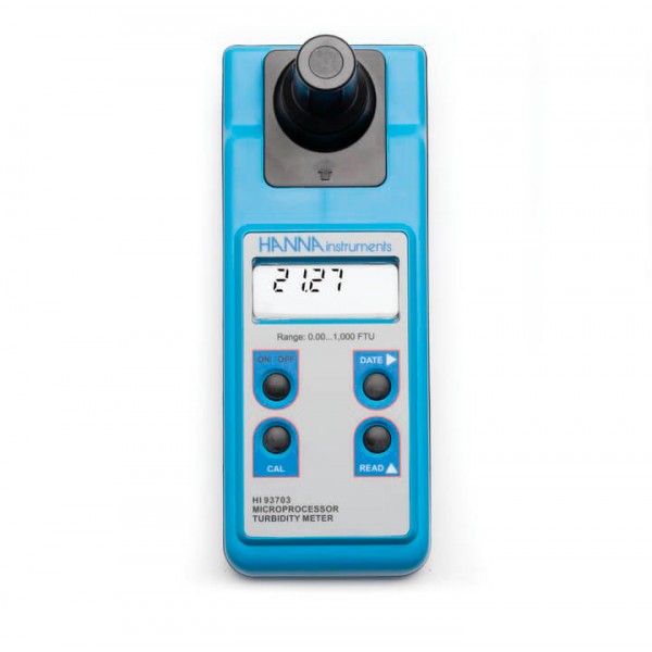 - El medidor portátil de turbidez HI93703 está especialmente diseñado para mediciones de la calidad del agua, proporcionando lecturas confiables y exactas, incluso dentro de los intervalos de baja turbidez. El instrumento se basa en un sistema óptico de vanguardia que garantiza resultados exactos, asegura estabilidad a largo plazo y minimiza la luz desviada y las interferencias de color. La calibración periódica con los estándares suministrados compensa cualquier variación en la intensidad de la lámpara de tungsteno. Las cubetas de 25 mm de vidrio óptico especial, garantizan la repetibilidad de las mediciones de turbidez.